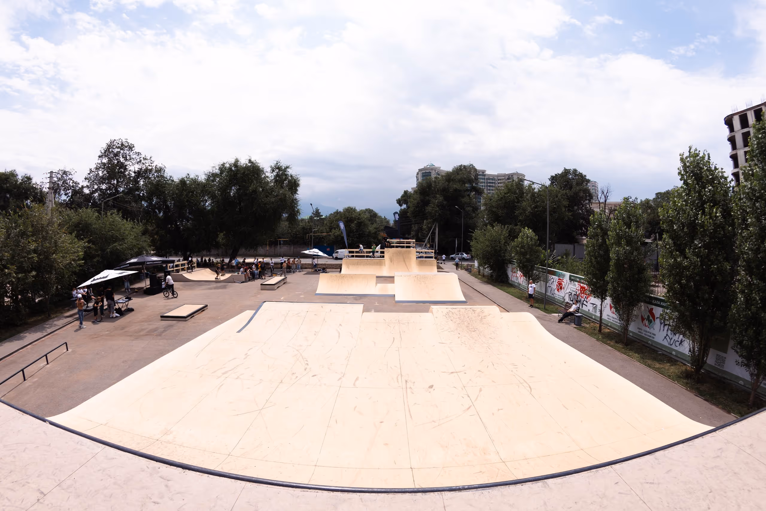 Стрит-зона представляет из себя удобную длинную грань, грань меньшего размера и мэнуалпэд. А так же длинный флэтбар и замечательную минирампу, в которой без стресса можно учить различные трюки.
